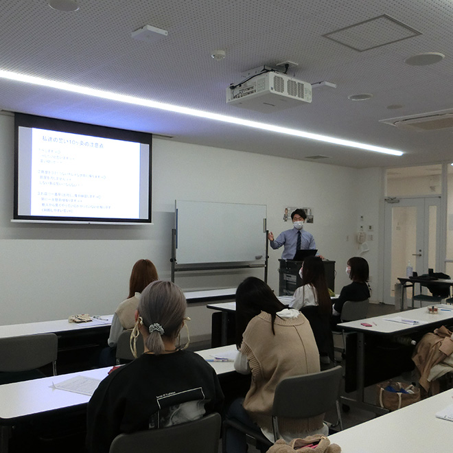 4階には多目的ホールや教員室、5階にはまつ毛エクステ、ネイル、エステ、メイク、着付など各種専門スタジオを完備。